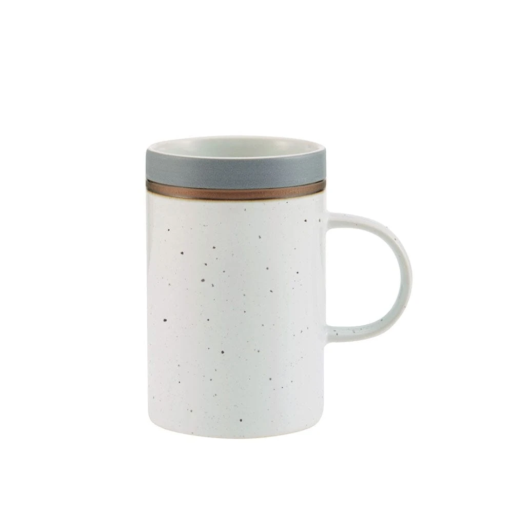 This Pfaltzgraff Ezra Grey Dinnerware Set features a speckle background pattern, with gray and metallic bands around the rim, adding a burst of color and modern allure to your everyday dining.