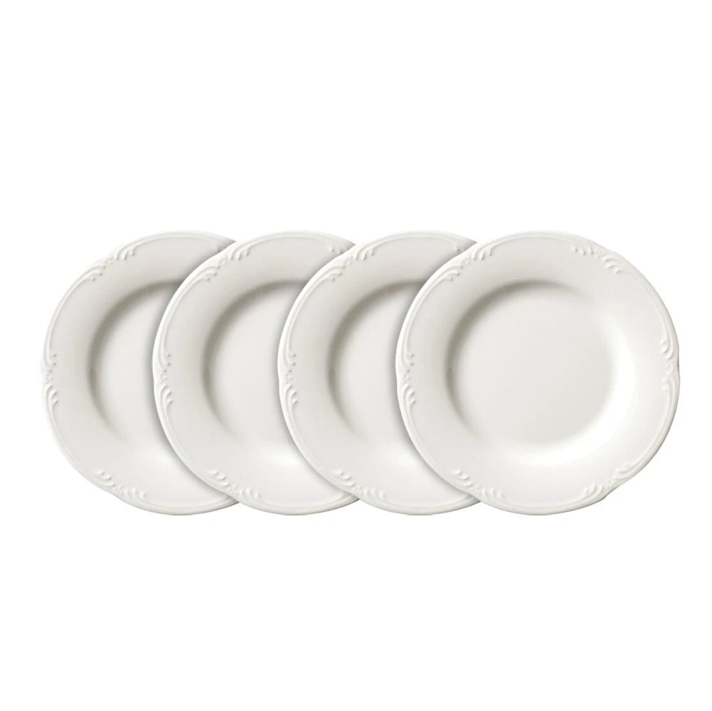 The luncheon plate is really a necessary piece to have. Sized between the dinner and salad plates, this size is perfect for a smaller meal, sandwich and chips, or as a charger under a soup bowl. Constructed of stoneware. Microwave and dishwasher safe. Set of 4 luncheon plates, each measures 9 inch diameter.