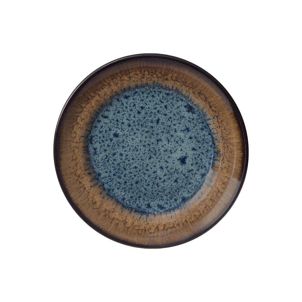 This Pfaltzgraff Monroe Blue Set of 4 Appetizer Plates features an eye-catching speckled blue effect in the center, a natural line design circling the rim, and a deep, dark band framing the edge, with a reactive glaze finish. Due to the nature and hand-crafted qualities of reactive glaze, no two pieces are exactly alike and will exhibit unique variations in color and pattern. Product may slightly differ from image shown.