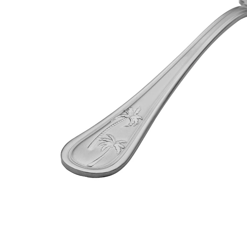 This Towle Everyday Palm Breeze Flatware Set is adorned with an intricate depiction of two palm trees at the base of the handle and features a muted finish to bring understated style to your tabletop.