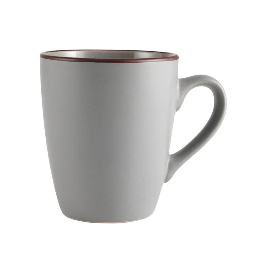 This Pfaltzgraff Pierce Gray Dinnerware features a gray color that is highlighted by a bold brown band around the rim and a distinct speckle effect, with a reactive glaze. Due to the nature and hand-crafted qualities of reactive glaze, no two pieces are exactly alike and will exhibit unique variations in color and pattern. Product may slightly differ from image shown.