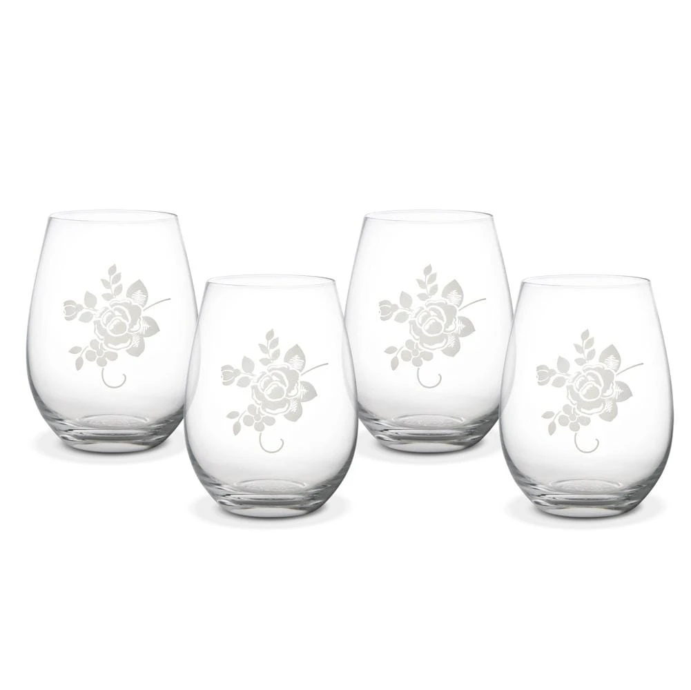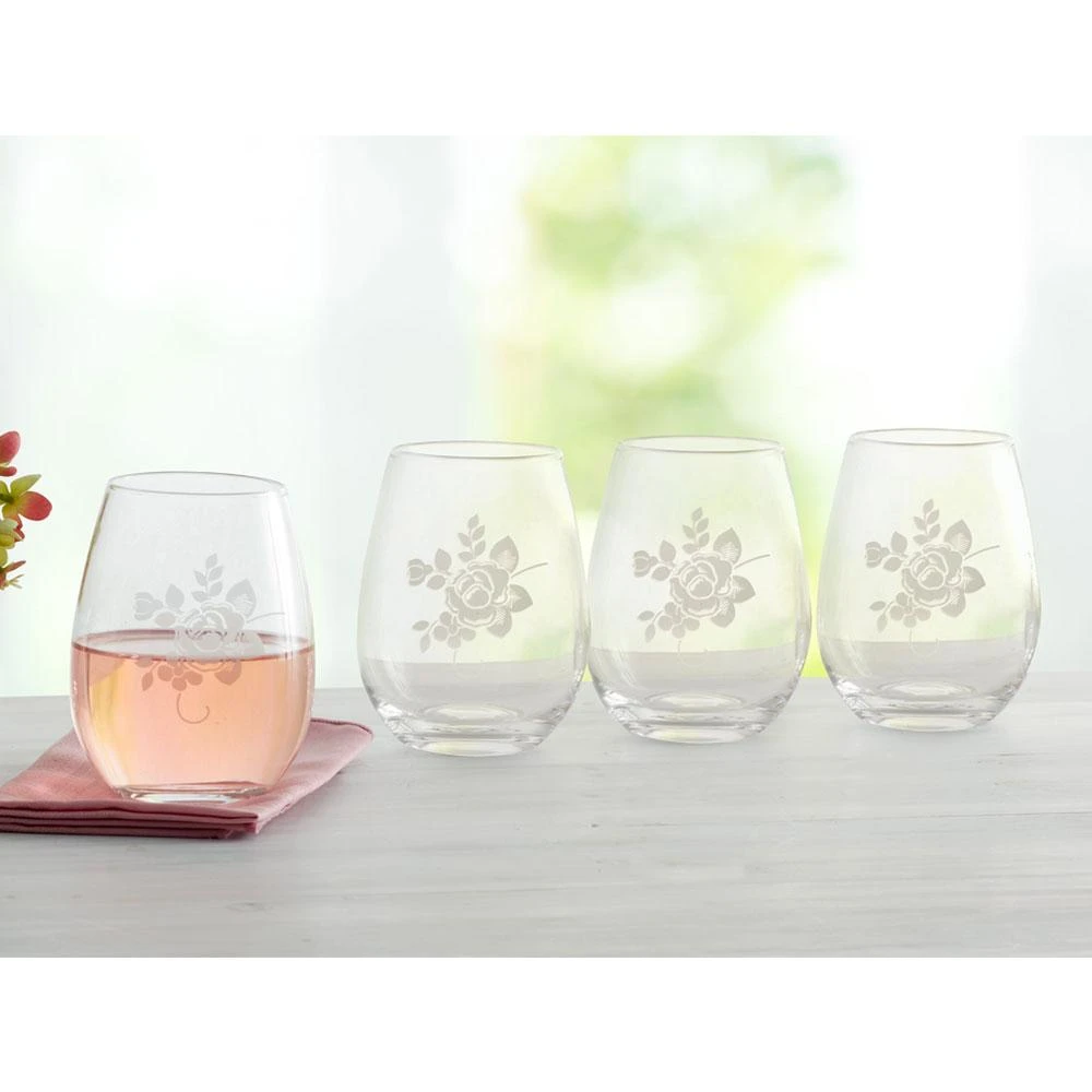 Tea Rose Set Of 4 All Purpose Stemless Wine Glasses