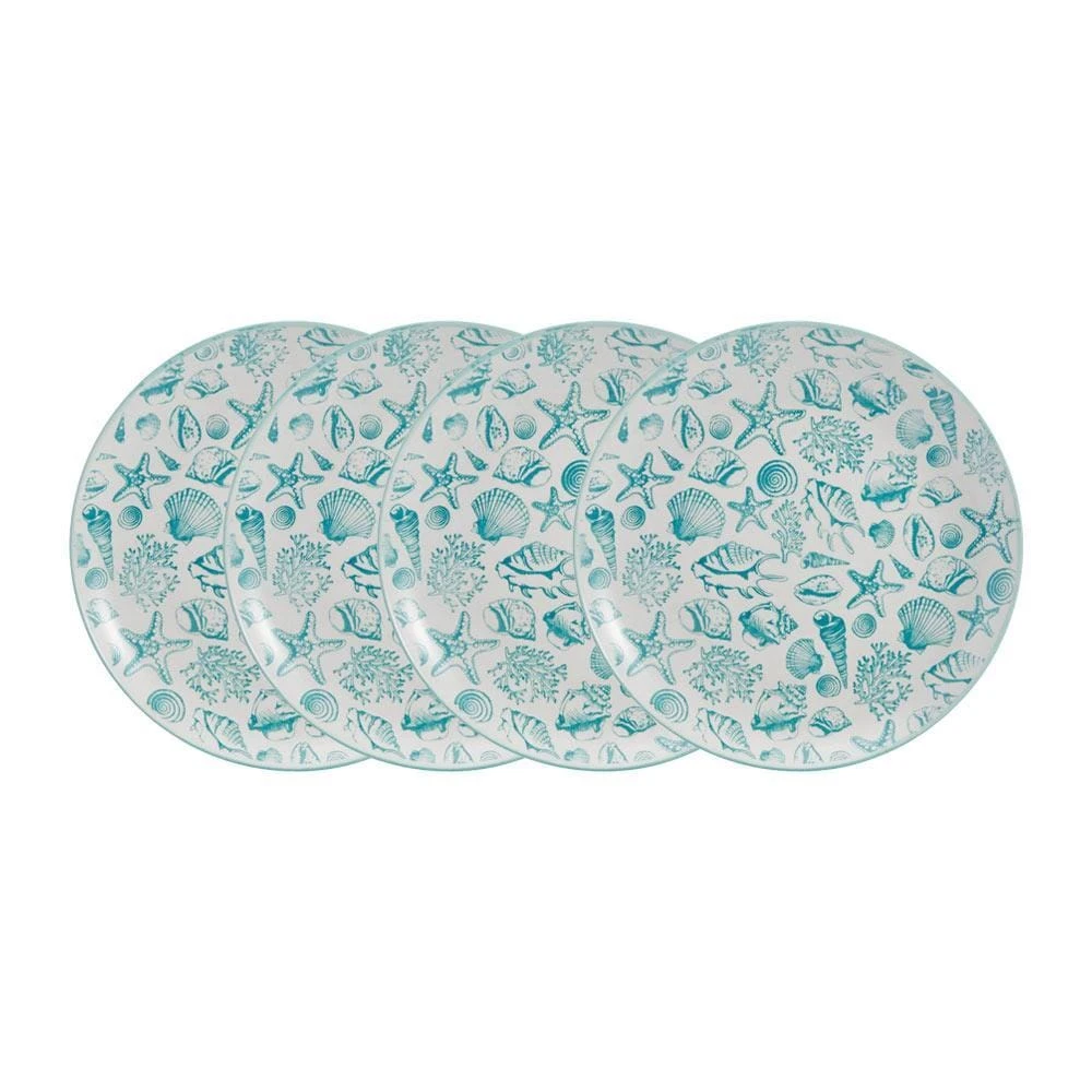 A whimsical starfish and seashell pattern wil make a splash for your summer table. Crafted of stoneware. Microwave and dishwasher safe. Set of 4 salad plates, each measures 8 inch diameter.